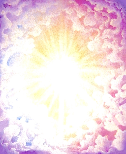 Hoy es un día importante en los anales de la historia Espiritual, y es de veras un privilegio para Mí, el haber sido el Ser escogido para venir y estar con ustedes en este día especial. Es importante que se preparen así mismo para esta Actividad manifiesta, porque voy a mostrarles una manifestación física de la Llama Triple! La mas fiel, la más bella Llama Triple jamás representada físicamente. Quiero que ahora vean y sientan la Llama Triple! (a medida que la música se expande, el Maestro Jesús devela un cuadro de la Llama Triple).